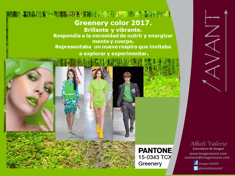 El COLOR DEL AÑO 2017 fue el ya famoso “GREENERY”, un amarillo verde, vibrante y brillante. El “GREENERY”, respondía a la necesidad de nutrir y energizar nuestra mente y cuerpo.