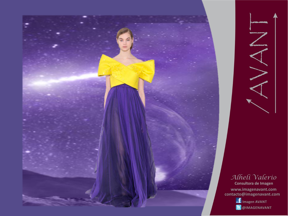 Si por el contrario tú buscas un contraste que es mucho más atrevido y arriesgado, puedes optar por usar el ULTRAVIOLETA con tonos de amarillo.