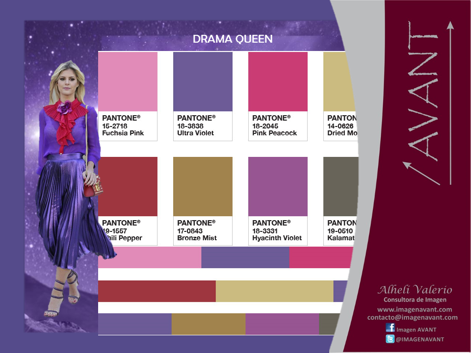 La paleta Drama Queen te invita a realizar combinaciones atrevidas donde mezclas el ULTRAVIOLETA con tonos elegantes y terrosos. Definitivamente un look que debes intentar.