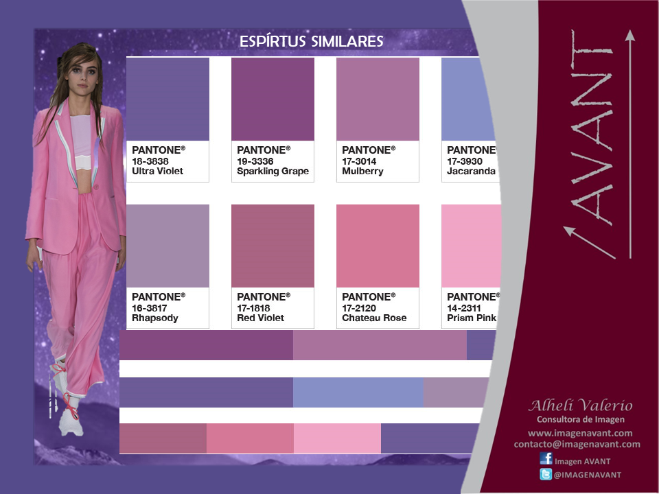 La paleta Espíritus Similares nos muestra otras opciones de combinaciones del ULTRAVIOLETA análogas en diferentes intensidades, siempre una opción a prueba de errores.